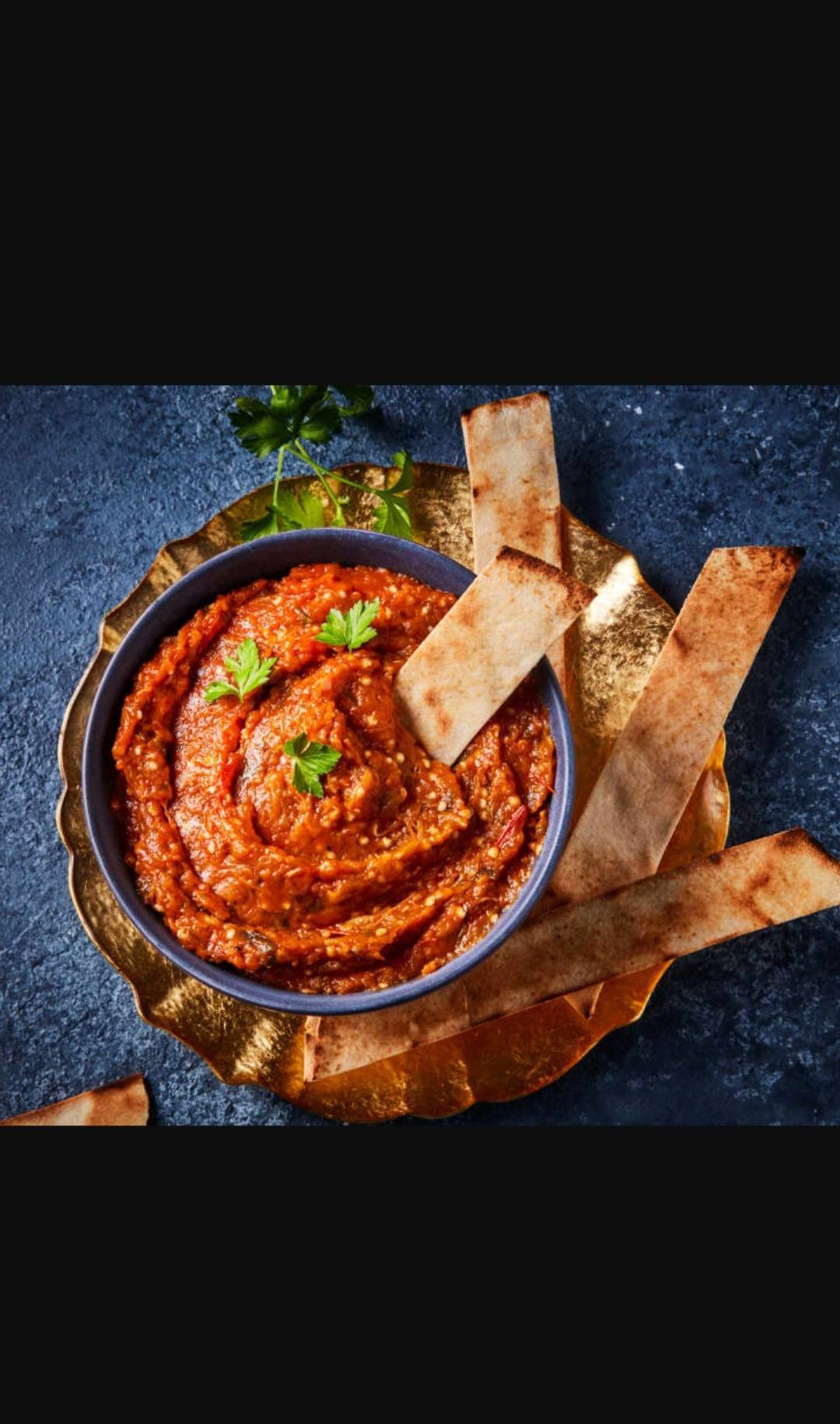 Cette entrée est accommodé d'Aubergines rôties, écrasées ou mixées, cela dépend de la cuisinière.